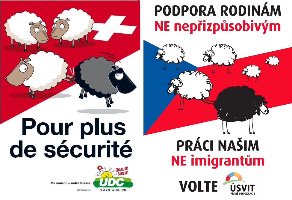 eho realizace. A takový případ není jen jeden: podobnou krádeží volební kampaně – opět s protipřistěhovaleckými motivy – se roku 2014 prezentoval Tomio Okamura. Tehdy to bylo od Schweizerische Volkspartei a jednalo se o plakát Sicherheit Schaffen s černými ovečkami z roku 2013. Informoval o tom iDNES i A2Larm. Lze jen doufat, že procenta těchto stran budou rovna procentům vlastní invence v kampaních, a že budou hledět dodržovat taky jinou staročeskou tradici, než je vykrádání cizinců.
