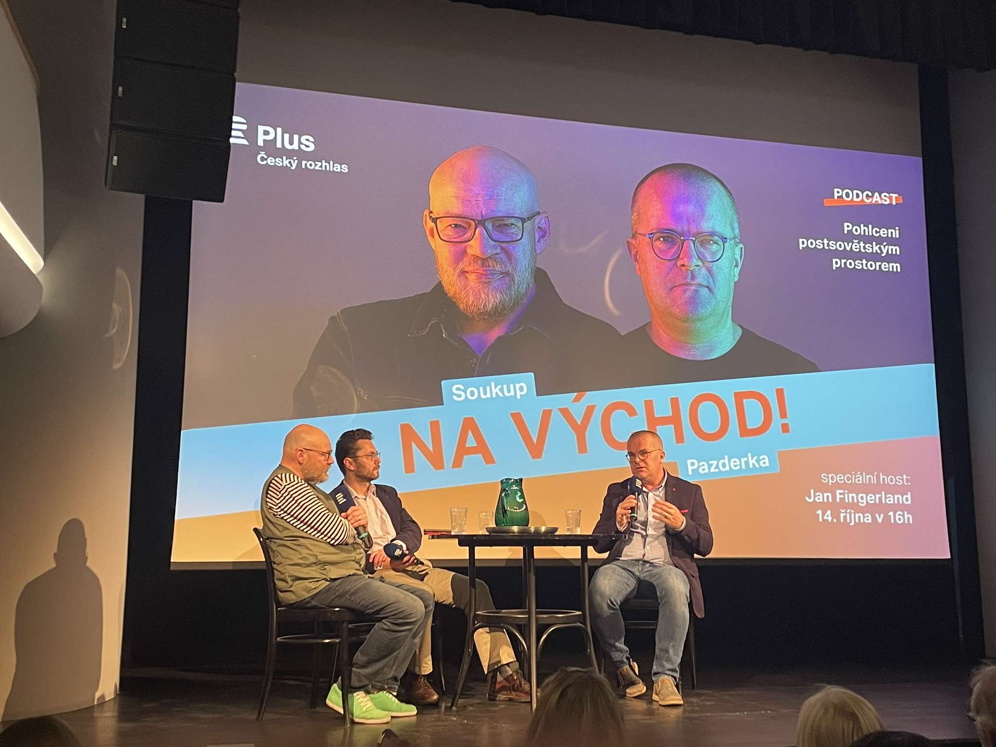 Úterní odpoledne 40. ročníku rozhlasového mezinárodního festivalu Prix Bohemia Radio zahájili rozhlasoví novináři Ondřej Soukup a Josef Pazderka. Do olomouckého Muzea umění nalákali návštěvníky na jejich další podcastovou epizodu Na východ!. K diskuzi na téma vztahy Ukrajiny a Izraele během současných válečných konfliktů přispěl i host Jan Fingerland, který se jako komentátor Českého rozhlasu zaměřuje na Blízký východ. Během diskuze se novináři zaměřili na složité vztahy zemí s dalšími aktéry války ale i na problematiku mediálního pokrytí v zasažených zemích.
