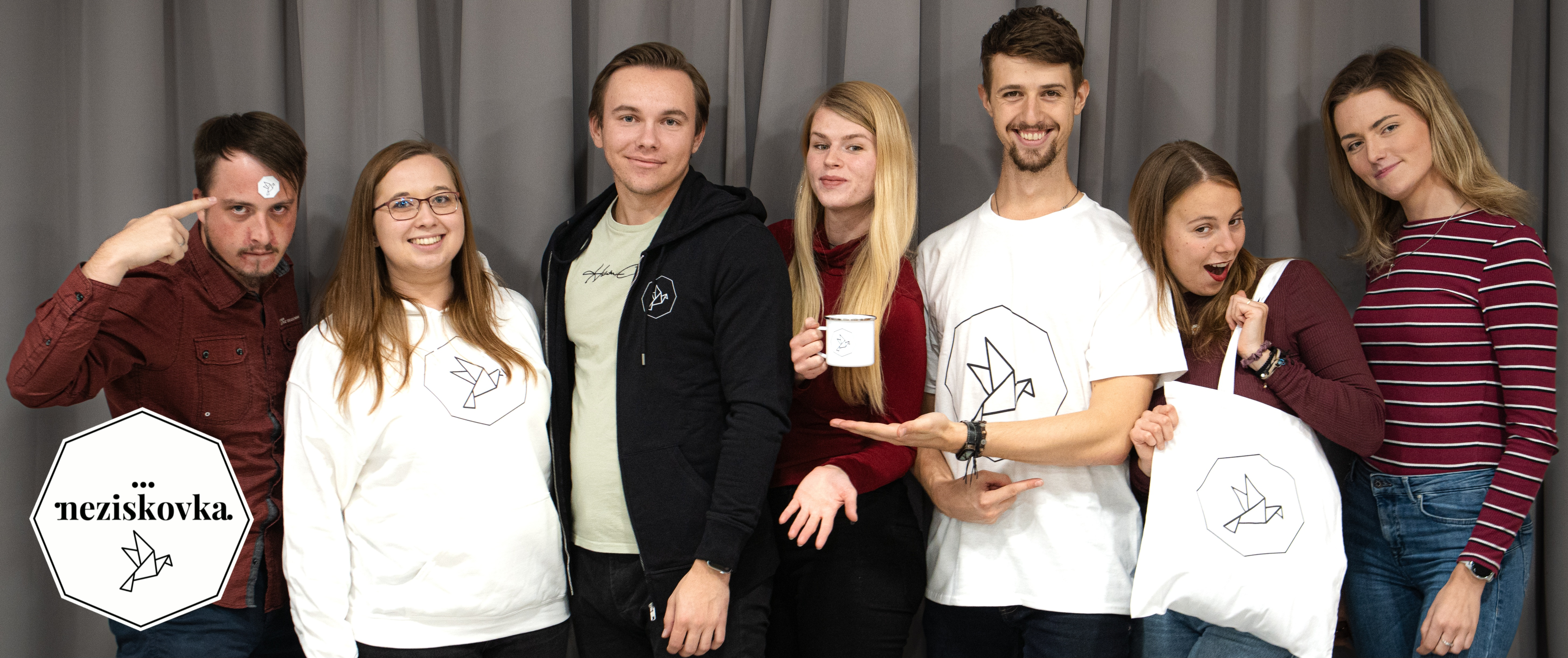 První věc, která padne do oka lidem, kteří se setkávají s Neziskovkou poprvé, je právě její neobvyklý název. Doslova doslovné. „Bavíme se tím doteď. Už od začátku jsme si říkali, že chceme založit neziskovku, a když přišlo na to, jak by se měla jmenovat, padlo tisíc návrhů. Využívala se i pomoc umělé inteligence. Ale zjistili jsme, že nikdo tomu neřekne jinak než Neziskovka,“ vysvětluje slečna Slováková. Někdy zakladatelé naráží na to, jestli to byl dobrý nápad. Sám název ale budí v lidech otázky, které se dají využít k odbourání počátečních konverzačních ledů. Při vysvětlování rovnou navazují na to, kdo vlastně jsou a co je jejich cílem. Když zjistili, že takové jméno není zaregistrované, zkusili to. Byl to takový vtípek, který si museli trochu obhajovat při zakládání, ale nakonec to vyšlo.