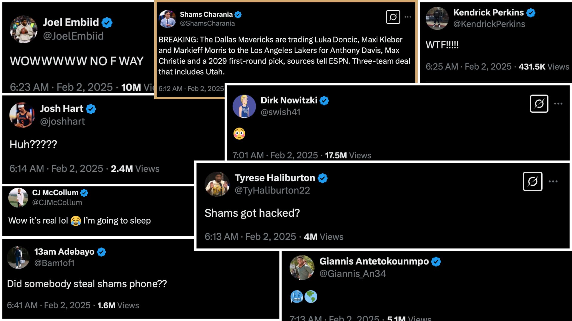 Reakce hráčů na trade – Koláž vytvořena z postů na sociální síti X
