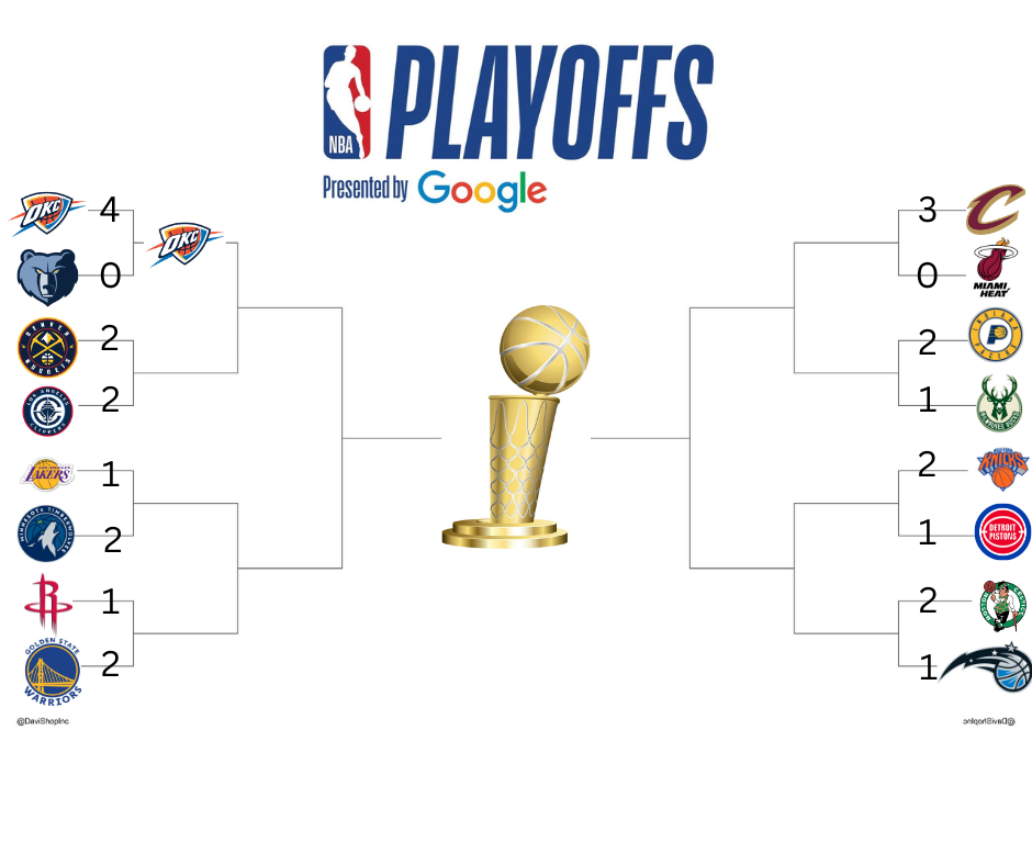 V západní konferenci se dotrápil tým Memphis Grizzlies. Ti stejně jako Nuggets vyhodili svého kouče krátce před Playoffs, ale to nebyl jejich nejzávažnější problém. Stáli totiž na osmém místě a v match-upu proti Oklahoma City Thunder, nejlepšímu týmu v lize. Thunder už vyhrál tři hry v sérii a k postupu do dalšího kola týmu chyběla jen jedna výhra. Memphis se bránil ve čtvrté hře, avšak bez jejich hvězdného hráče to nešlo. Ja Morant utrpěl pohmožděninu pánve po pádu ve třetí hře. Tudíž čtvrtou hru vyseděl a Oklahoma City Thunder porazil Grizzlies a tím postoupil do druhého kola. Memphis vypadl jako první v Playoffs.